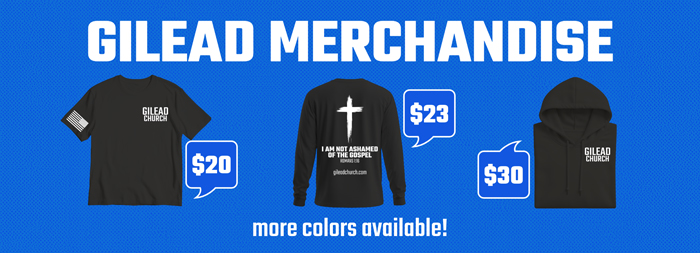 Child Dedication Click here to register New Here? Get to know us! Next Steps Click here to learn more Gilead Shop Click here to purchase Give Online Safe, Quick, and Secure One Year Bible Click here to learn more Take Your Next Step